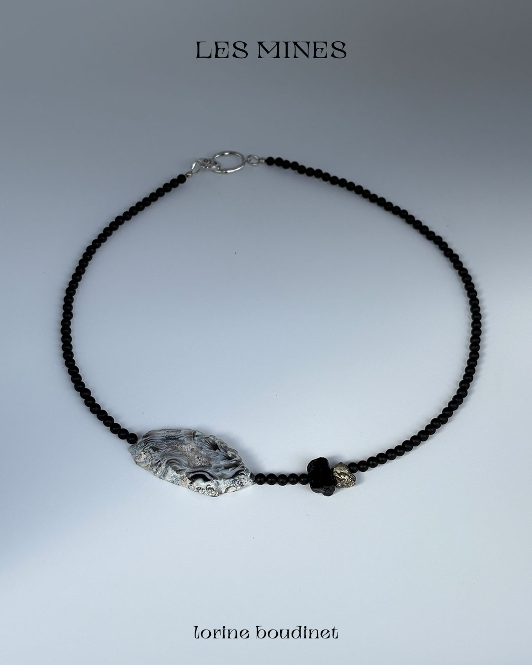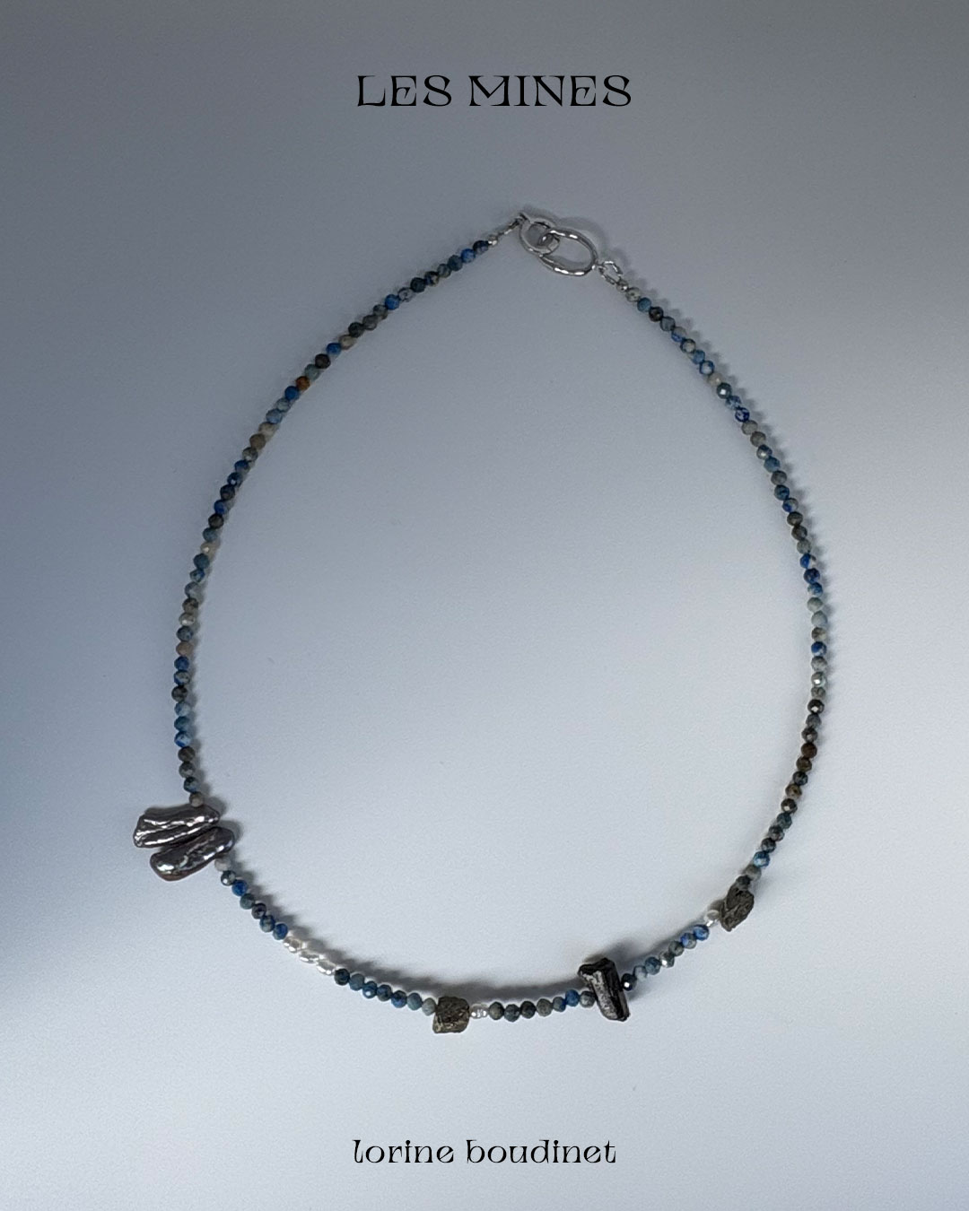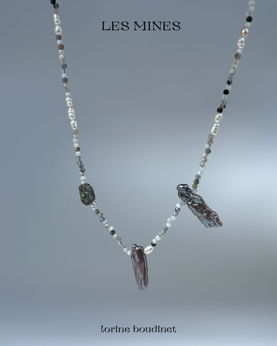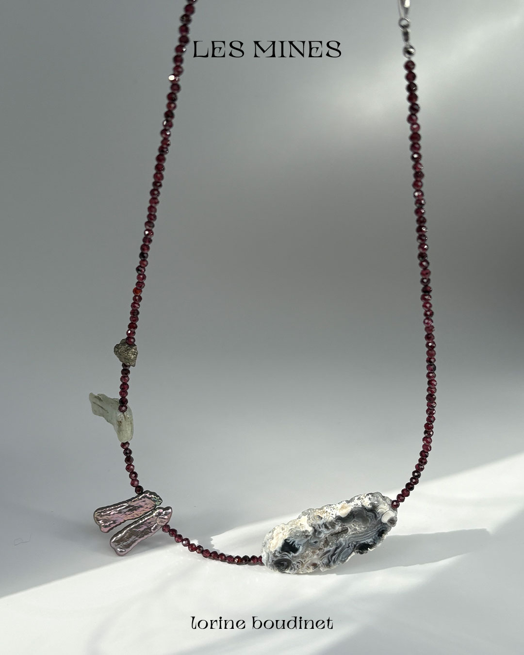 Aquamarine, agate, rock crystal, garnet, kyanite, quartz, pyrite, tourmaline, turquoise and baroque freshwater pearls. The Mines collection celebrates nature’s artistry, the presence of chance, and the subtle mystery of eloquent omens.